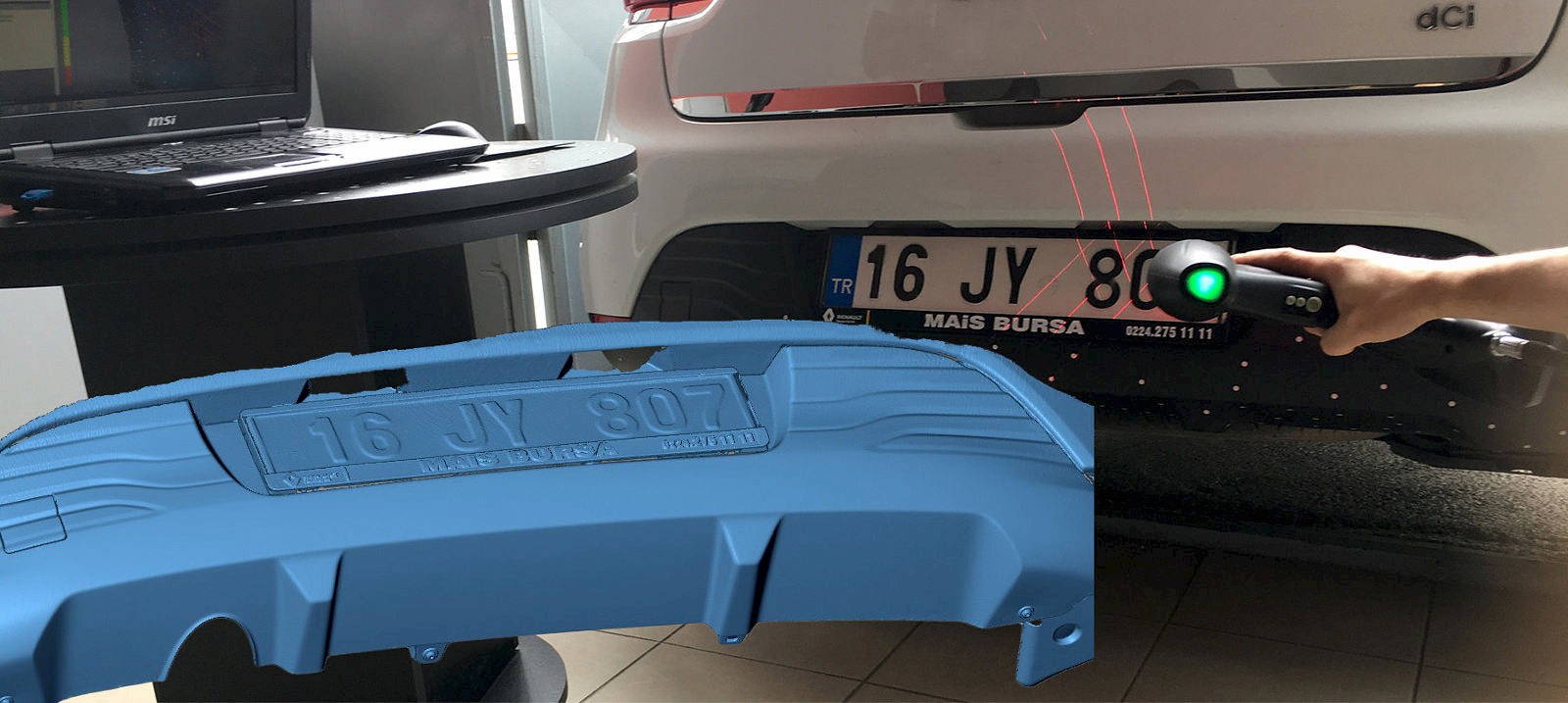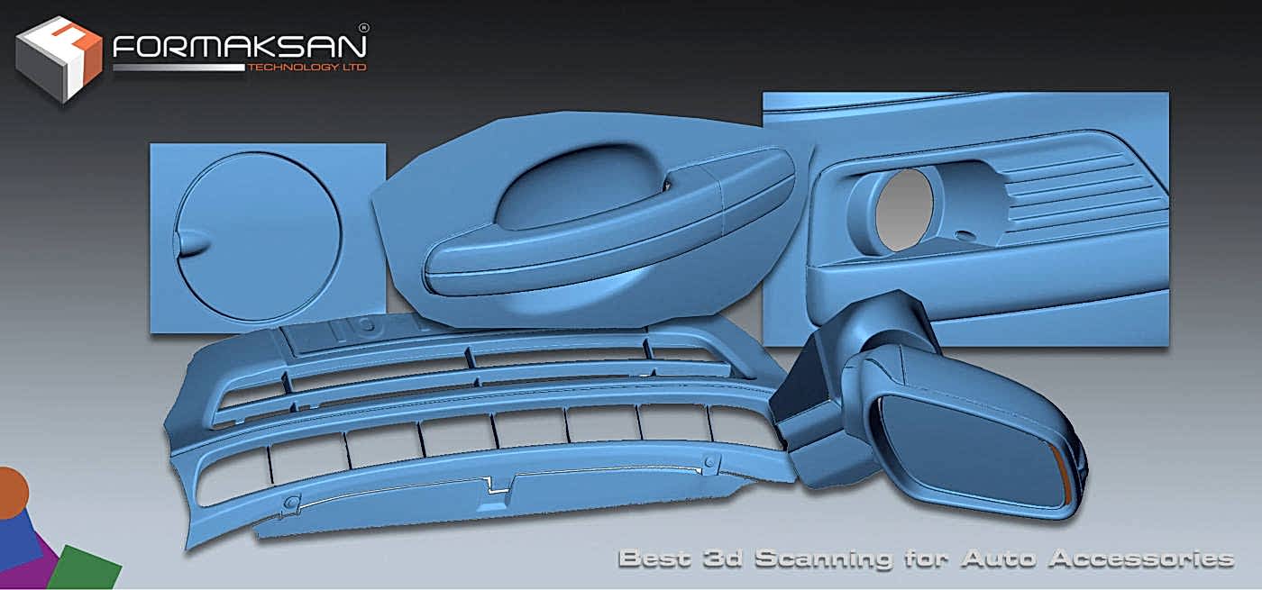Yüksek çözünürlük ve hassasiyete sahip mobil Lazer tarayıcılarla, herhangi bir araç ister Müşterinin kendi yerinde isterse aracı Firmamıza getirerek aksesuar yapılması pilanlandığı aksamları hassas bir şekilde 3d taranır ve elde edilen mesh data özel yazılımlarla düzenlenir,müşterinin istediği data formatında kendisine teslim edilir. Aşağıdaki resimde Ford Marka otomobile ait örnek mesh data resimlerini görmektesiniz.