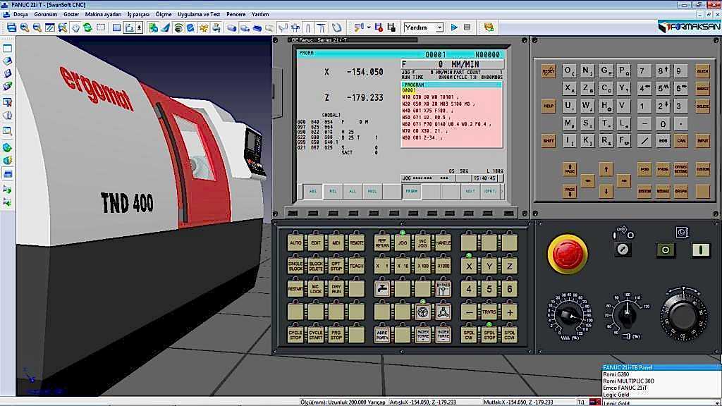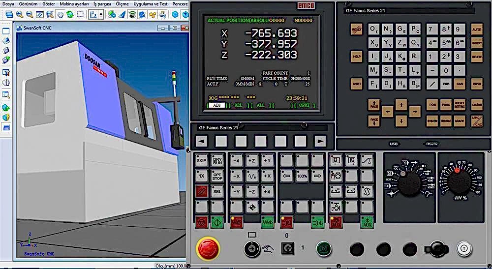 Makine Teknolojisi alanında çalışan veya okulunda CNC tezgâhı olan, olmayan tüm öğretmenler ve öğrenciler için çok güzel bir CNC eğitimi simulasyon programı olan bu sistem içerisinde CNC Freze ve Torna tezgâhlarında kullanılan FANUC, SIEMENS, MITSUBISHI, MAZAK, FAGOR, HAAS, DASEN, HEIDENHAIN gibi 65 farklı kontrol ünitesiyle 150 farklı operatör paneli ve üç boyutlu makina simulasyonu mevcuttur. program içerisinde CNC manuel programlama yapabilir, parça işleme simulasyonunu gerçek zamanlı izleyebilir ve üretilmiş olan parça üzerinde ölçme ve kontrol işlemleri yapabilirsiniz.Dokunmatik ekran özelliği ile kendinizi sanki gerçek bir CNC ünitesi başında gibi hissedeceksiniz.